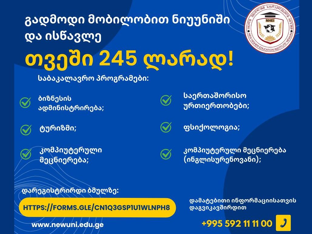 ახალი უმაღლესი სასწავლებელი – ნიუუნი გთავაზობს სწავლას თანამედროვე აკადემიურ გარემოში, სადაც მიიღებ როგორც თეორიულ ცოდნას, ისე პრაქტიკულ გამოცდილებას.